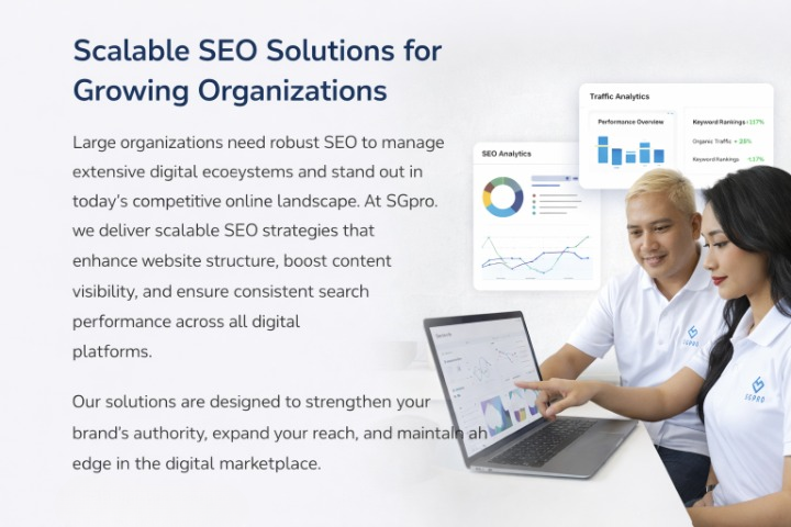 Large organizations require more than basic online marketing. They need scalable digital strategies that support growth, performance, and long-term visibility. At SGpro, we help organizations strengthen their digital presence through integrated solutions that combine advanced SEO, high-performing paid advertising, and enterprise-ready web design and development.